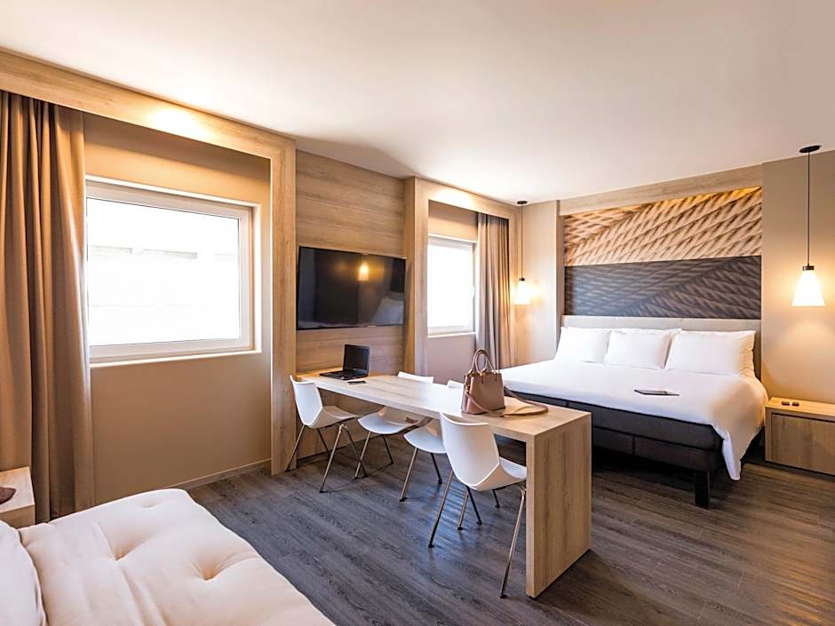 The quadruple room features a private bathroom equipped with a shower and a hairdryer. The air-conditioned quadruple room offers a flat-screen TV with streaming services, a private entrance, a wardrobe, heating as well as city views. The unit offers 2 beds.